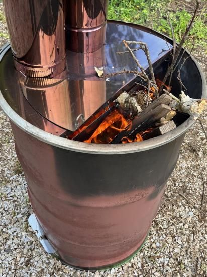 ロケットストーブの燃え方をわかっている玄人のみ/素人は手出し無用